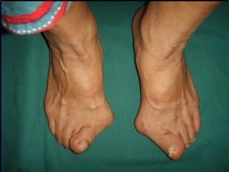15年前双足拇趾根部的外侧出现疾病感,于是到医院就诊,医生给予止痛药或一些中药外敷,有时可减轻疼痛,但过不了多久疼痛又会出现。近年来,足大拇趾偏斜越来越明显,把第二趾顶了起来,行走时极不方便,并且足趾挤一起,足趾之间经常出现鸡眼,疼痛不已。